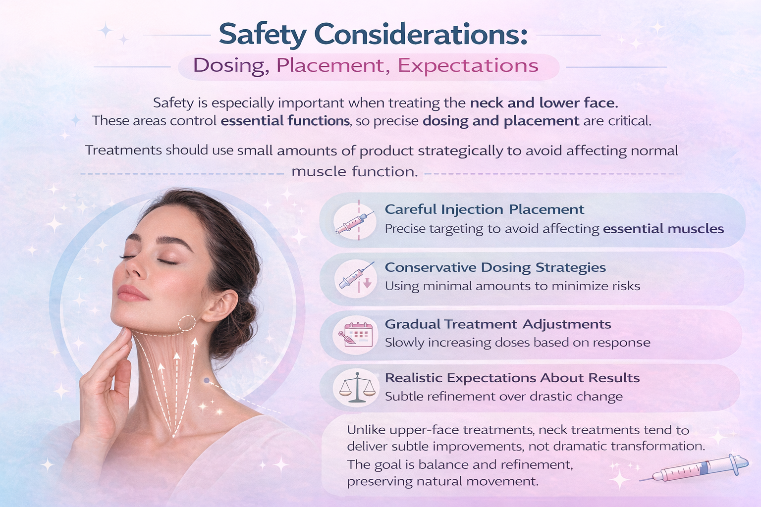 With careful planning, skilled technique, and proper assessment, treatments can help maintain harmony between the face and neck while preserving natural expression.